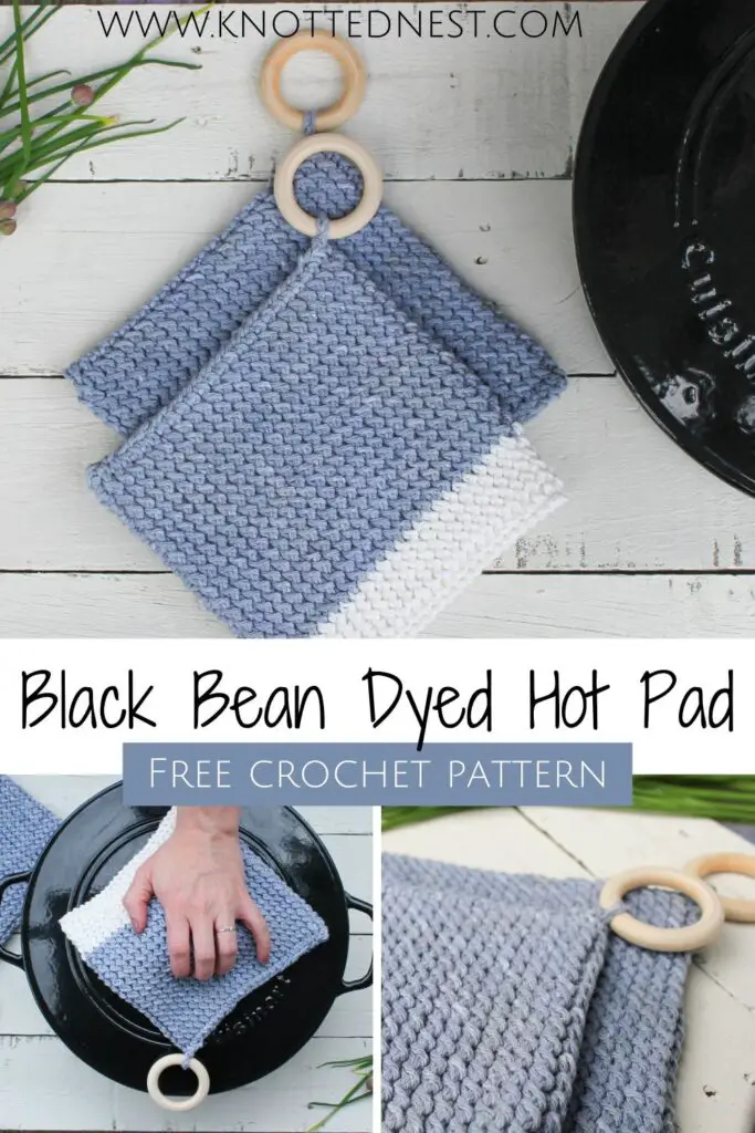 Black Bean Dyed Crochet Pot Holder Pattern The Knotted Nest